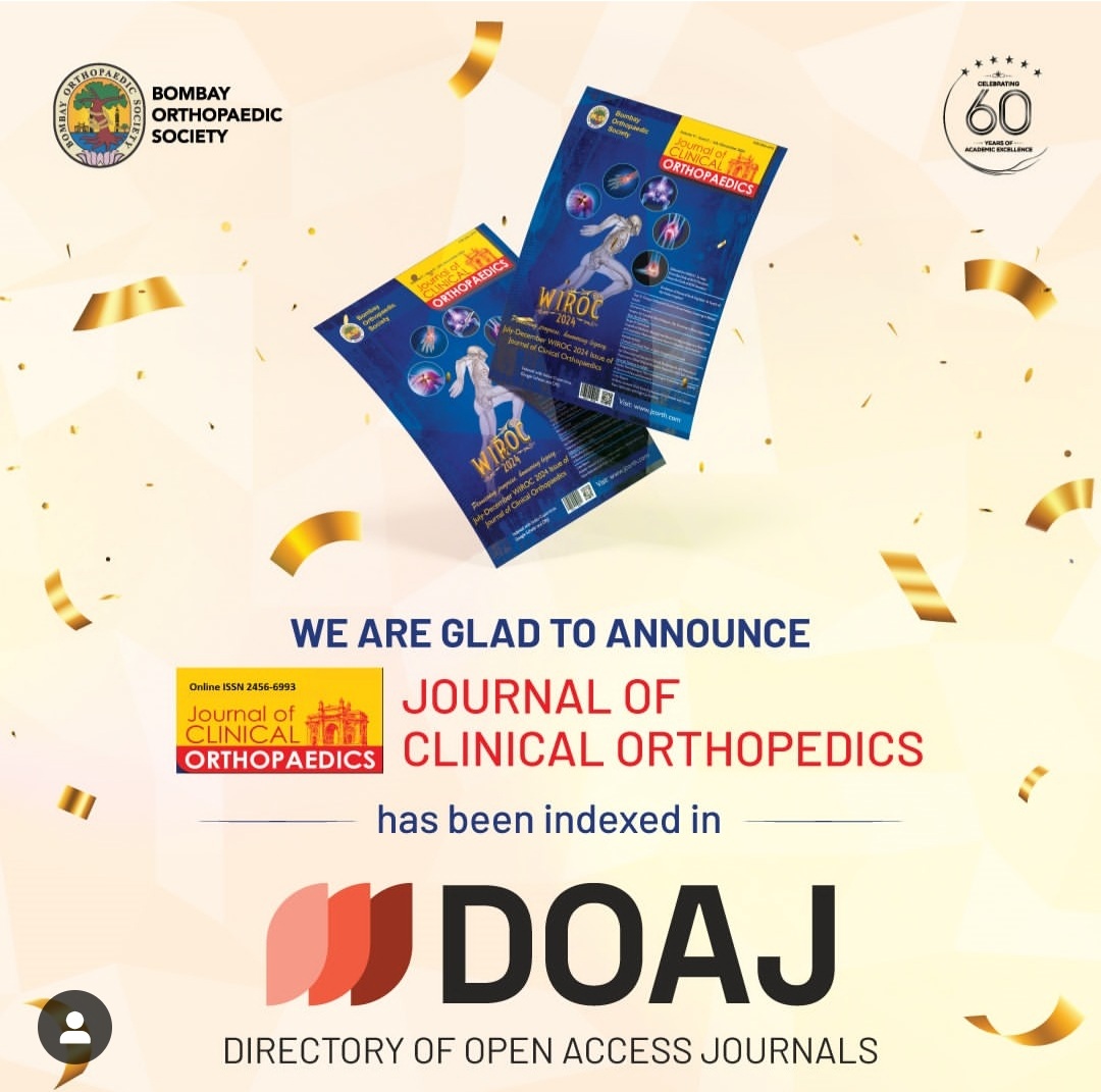 Journal of Clinical Orthopaedics is the official Journal of Bombay Orthopaedic Society and is published by Bombay Orthopaedic Society and publishing is overlooked by Orthopaedic Research Group: A division of Indian Orthopaedic Research Group.