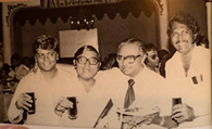 Figure 7: High table at IOA Silver Jubilee Dinner. From left to right: Dr. K P Shrivastav, IOA president, K T Dholakia SICOT president, Mrs Shrivastav, Robert Merle d’Aubigné making a post-dinner speech.