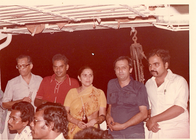Figure 5: Revellers on board. From left to right: K V Chaubal, N S Laud, Manda Chaubal, Anand J Thakur, Ashok Maniar.