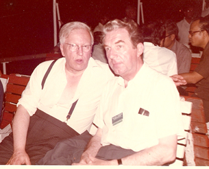 Figure 6: W J W Sharrad, pediatric orthopedic surgeon and Edourad van der Elst, treasurer of SICOT in deep conversation on the cruise. Far right, in profile, P H Vora.