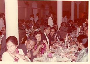 Figure 8: IOA Silver jubilee celebratory dinner. From left to right: Shubha Laud, N S Laud, Urmila Thakur, Anand J Thakur, Tara RamaRao, W G Rama Rao.
